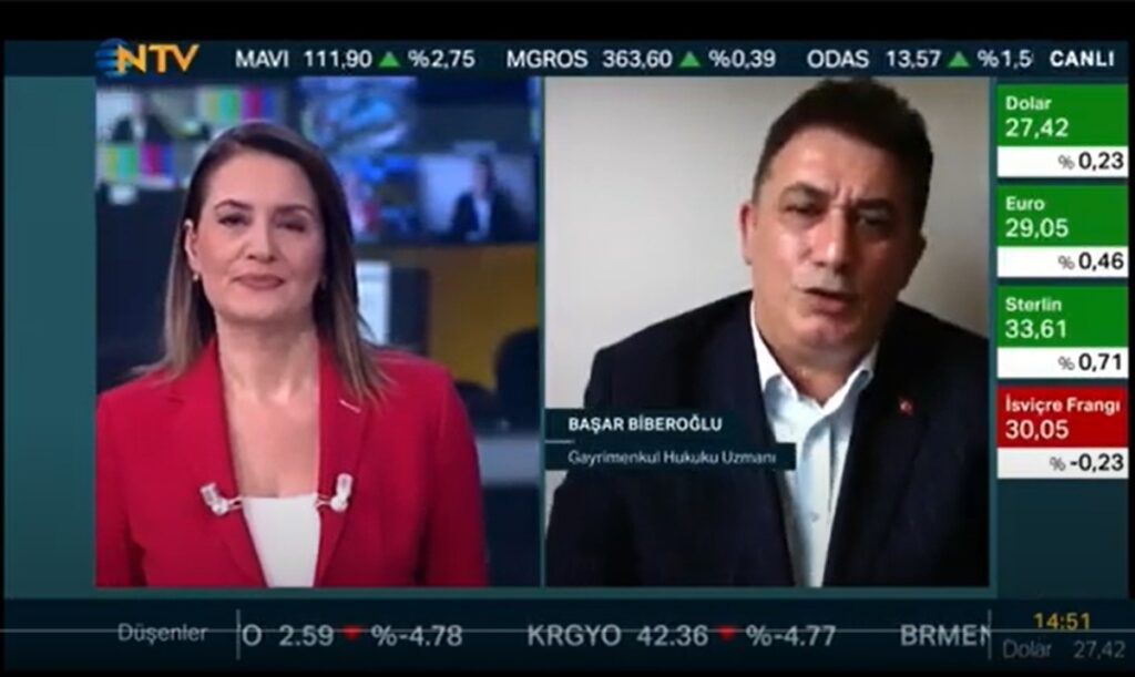 Gayrimenkul ve Hukuk Danışmanı Başar Biberoğlu NTV Kanalında Benan Özdemir'in Sorularını yanıtladı.